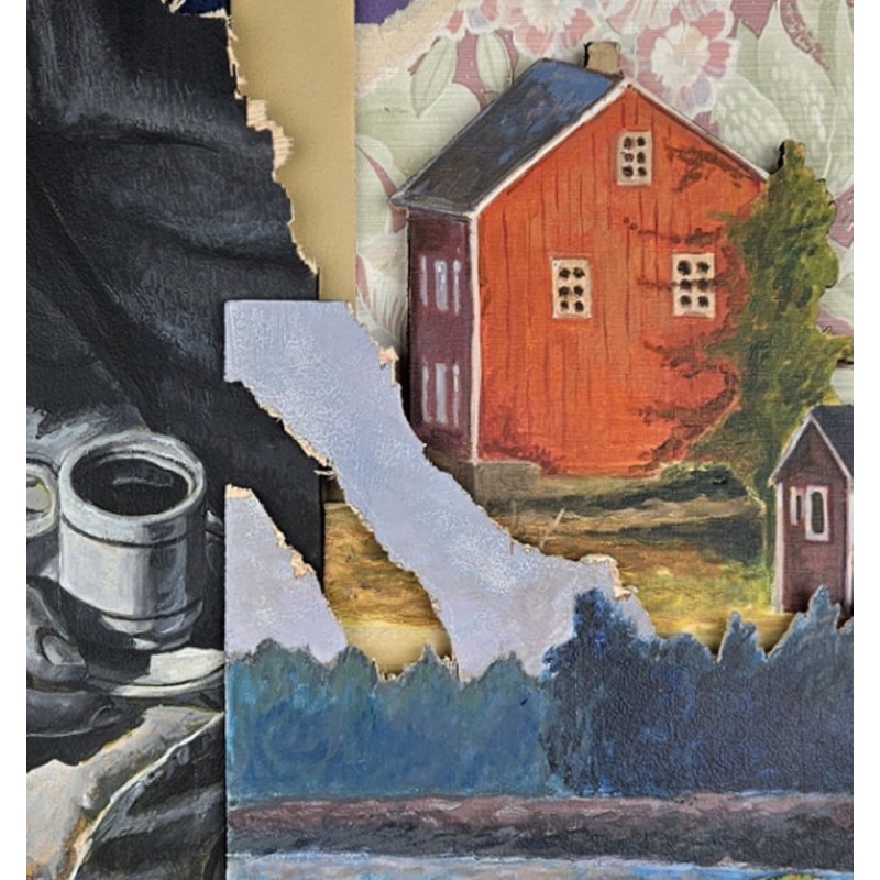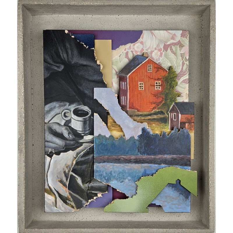 Technique mixte : acrylique, mine de plomb, collage, bois, béton
