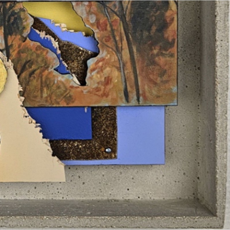 Œuvre encadrée dans un cadre béton très léger.