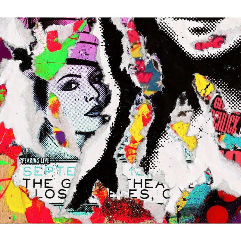 Figure emblématique de la scène street art française, Jo di Bona doit son succès fulgurant à sa technique unique qu’il a lui-même inventée dans les années 90 : Le “Pop Graffiti”, où il associe collages, diverses influences du graffiti avec la Pop Culture dont il s’est profondément imprégné. Fauviste des temps modernes, Jo mélange couleurs et mouvements pour créer des visages empreints de poésie et d’émotions.