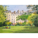 Sans nier la réalité de Paris, ses bouches de métro, sa foule, ses automobiles, il la représente en une ville joyeuse et colorée. Les gens, dans les aquarelles de Decoudun, sont vêtus de couleurs bigarrées, ils peuplent toutes ses aquarelles, comme s’ils étaient la signature du peintre. Jean-Charles aime à dire que les gens et les lieux ne font qu’un, c’est l’ensemble qui crée le paysage.