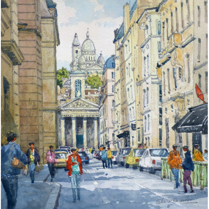 Son style est unique avec des esquisses au crayon précises et délicates et des ombres portées avec une grande technicité. Ses compositions arrivent à un équilibre parfait entre la douceur que requiert l’aquarelle et la large palette de ses couleurs.