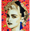 Le titre de cette oeuvre, "La Madone" souligne les rapports de Madonna à la religion (soit dans ses chansons, soit dans ses provocations) ainsi qu'à son attitude sur cette image : à la fois forte, intense, compatissante un rien mélancolique : elle me fait penser à une Mater Dolorosa... Carole B.