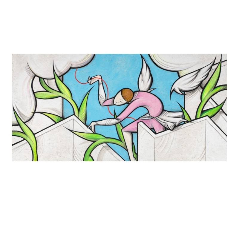 L'artiste a réalisé une peinture sur panneau OSB de dimensions 125 x 250 cm durant le festival. L’oeuvre a été photographiée puis tirée en digigraphie en édition limitée.