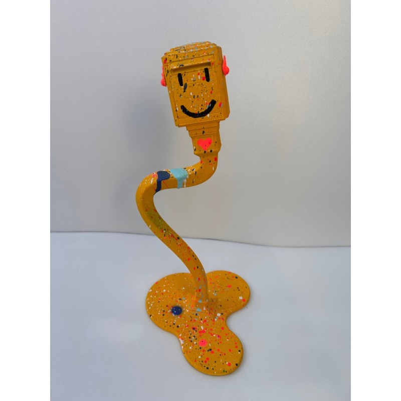 Brusk est né à Lyon en 1976. Il est avant tout un amoureux du dessin. Et c’est en 1991 que cet amour le mène à la rencontre du graffiti et de son univers subversif. Brusk est un artiste polymorphe, tout à la fois graffeur, muraliste, peintre, dessinateur, sculpteur, mais surtout narrateur d’un monde à la dérive dont il sublime les souffrances et les injustices par une esthétique explosive et percutante. La créativité de Brusk n’a eu de cesse d’évoluer depuis 1991 mais il est évident que le style de l’artiste est marqué par l’emploi de deux techniques quasiment omniprésentes dans sa création : la coulure (dripping) et la déchirure qui viennent très souvent fragmenter la représentation du monde que l’artiste nous donne à voir. De cette altération du motif par déchirures et par coulures éclot une légèreté et une douceur révélatrices d’un monde dans lequel il semble alors possible de s’adoucir, de se réconcilier, de s’aimer, voire même d’espérer l’avènement d’un monde meilleur. Dès lors une ambiguïté surgit entre une forme colorée et lumineuse et un fond révolté, acide, parfois même très sombre, un propos qui dénonce les dysfonctionnements de nos sociétés modernes, une révolte intérieure qui métamorphose la laideur de ce monde en une explosion de beauté, un véritable oxymore pictural qui nous redonne espoir. Réduire l’œuvre de Brusk aux déchirures et aux coulures serait donc une erreur puisque l’artiste façonne finement un univers à la fois léger et brutal, confronte avec justesse la nature et la culture, nous pousse à appréhender la monstruosité de notre monde par un regard bienveillant qui s’affranchit de toute négativité. Brusk est un artiste incontournable de la scène street art, qui bénéficie d’une large reconnaissance sur le marché de l’art.