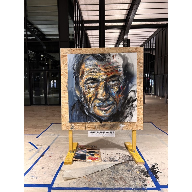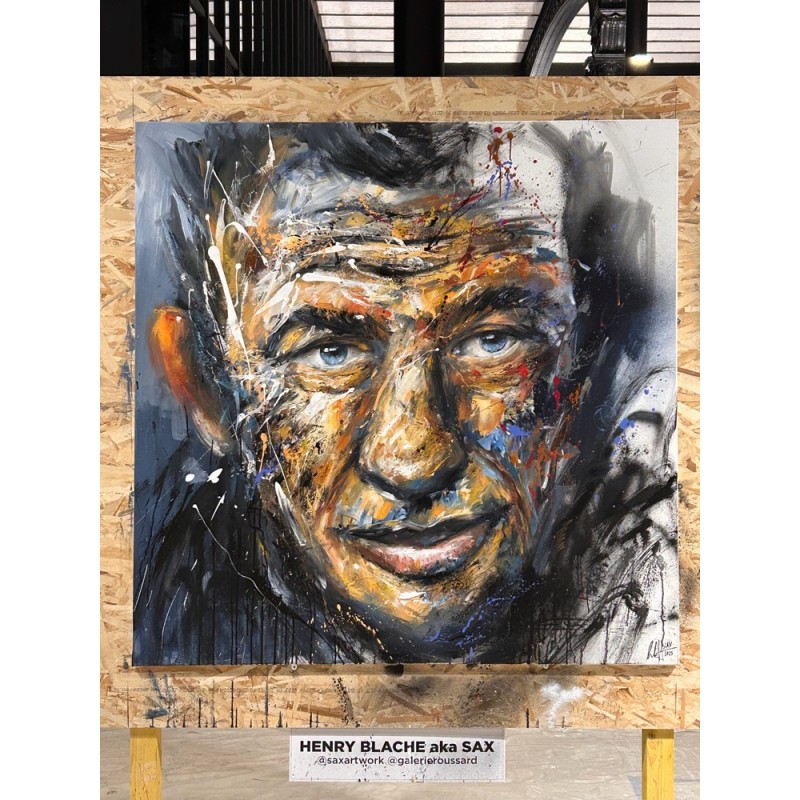 Plus qu’un simple hommage, cette toile restitue le charisme brut et populaire de Belmondo, dans une écriture picturale énergique et contemporaine, typique de Sax. Une pièce forte, née de l’instant, qui porte autant la mémoire d’une icône que celle de sa création publique.