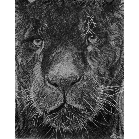 Alexis Raoult was born in the Paris region in 1993. He had a chaotic life, and went through the "Orphelins d'Auteuil". He is taught electricity. He spends his time drawing in his notebooks. At 18, he left everything and moved to Brittany. He then worked odd jobs, always scribbling in notebooks. In 2012, he decided to devote himself to drawing. He then speaks of a “chain of emotions”. His drawings allow him to express himself, assert himself, talk about what touches him. His work is tedious and meticulous. His very realistic drawings, only in pencil, give pride of place to emotion. Animals are his favorite subject. He very accurately transcribes their look, their attitudes, which challenge people, and thus creates a proximity between man and animal. Very quickly, his talent was recognized. He exhibits in France and internationally, wins several prestigious awards and is one of the youngest artists to be purchased by a National Museum. Some of his drawings represent more than 500 hours of work. In 2023, he became sponsor of the Foujita Foundation.