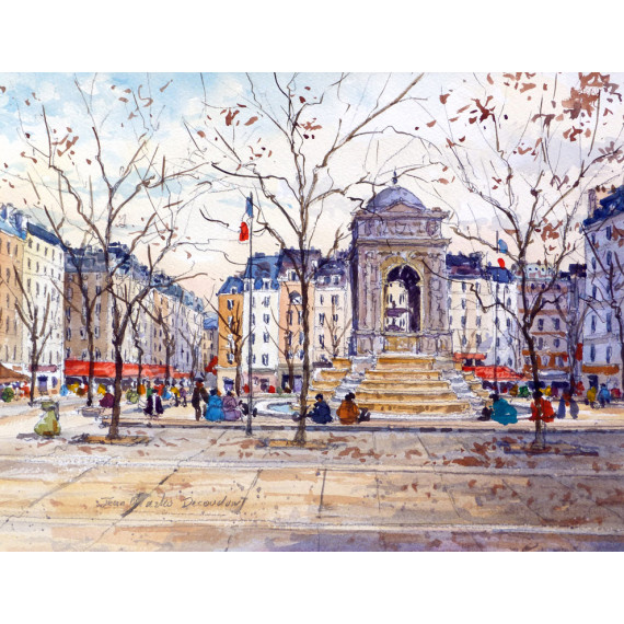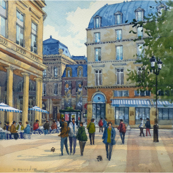 Jean-charles decoudun was born in Paris in 1962, grandson of the painter and illustrator Jean-Paul Decoudun, he will not listen to anybody's advice and therefore will not attend any school. His first exhibitions took place at the Frossard workshop, in the village of Batignolles in Paris in 1994. He exhibited all over France, and in 1997, begins to exhibit to Galerie Roussard, at the top of the Butte Montmartre. Lover of his city, Paris, she is the great source of inspiration for Jean-Charles Decoudun, who always sees it on the scale of a village. His style is unique, precise and technic. His compositions arrive at a perfect balance between the sweetness required by watercolor and the wide range of colors Jean-Charles Decoudun.