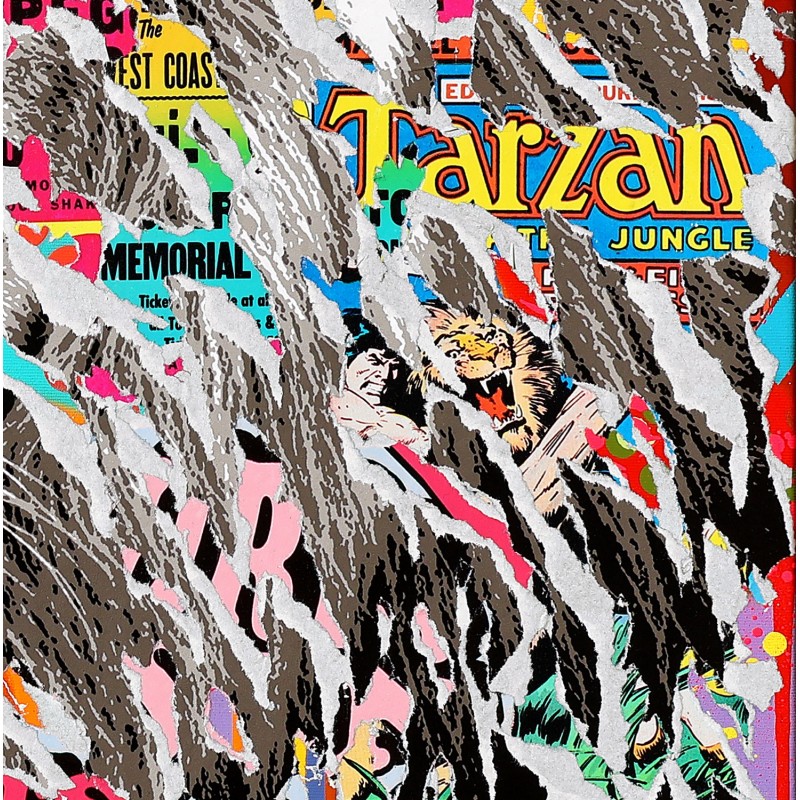 A leading figure in the French street art scene, Jo di Bona owes his meteoric rise to his unique technique, which he invented himself in the 1990s: “Pop Graffiti.” In this style, he combines collage, various graffiti influences, and the Pop Culture with which he has deeply immersed himself. A modern-day Fauvist, Jo blends colors and movements to create faces imbued with poetry and emotion.
