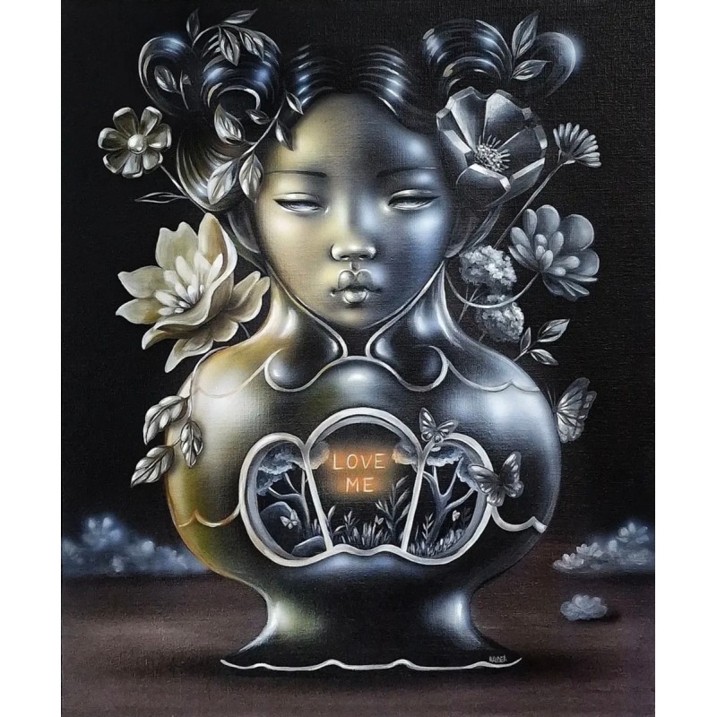 Her artistic universe is imbued with Asian, ethnic, futuristic, and Art Deco influences, making it truly unique.