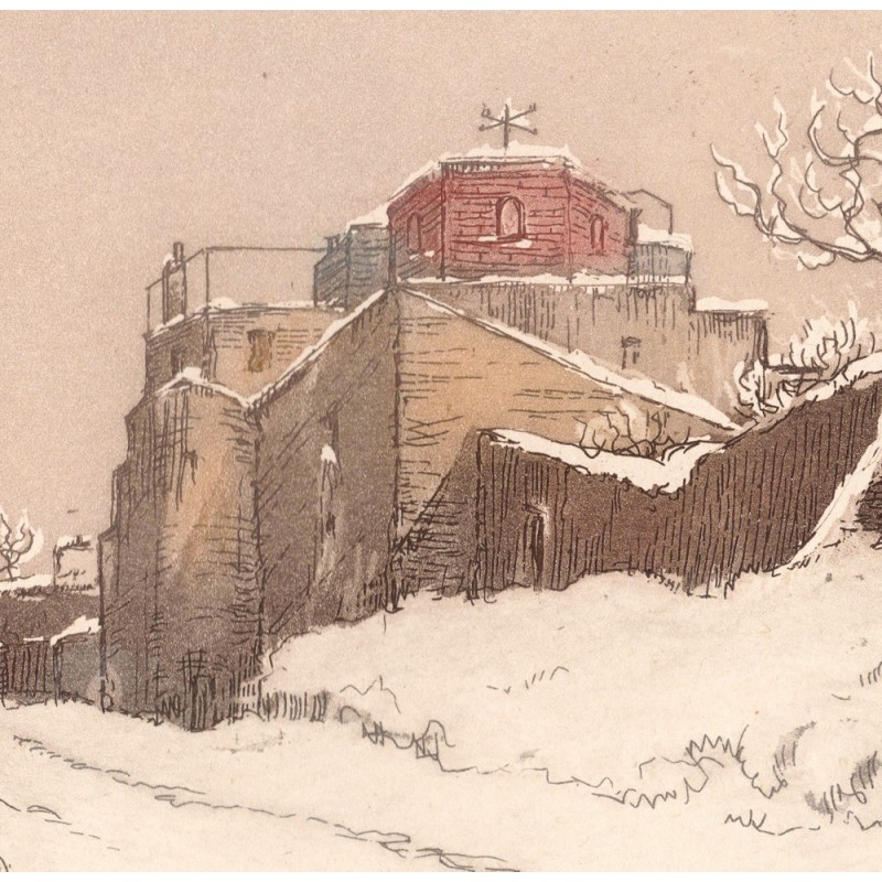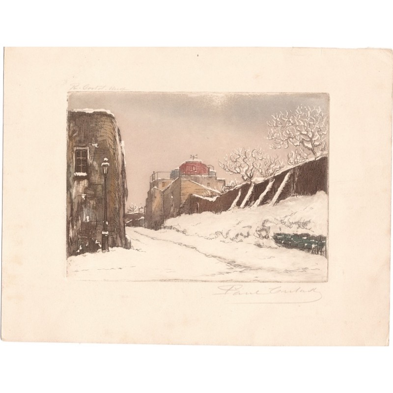 Aquatinte - Montmartre, Rue Cortot sous la neige