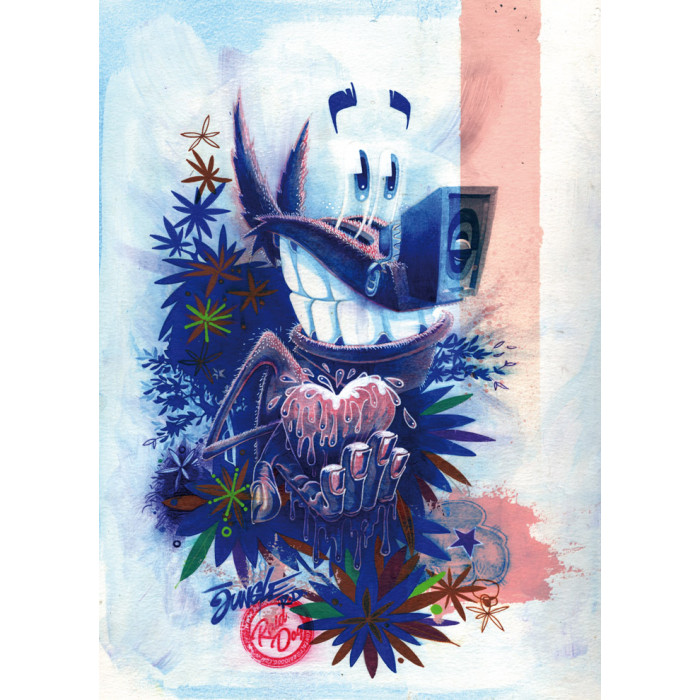 His career has brought JUNGLE RAIDDOG to rub shoulders with different artistic fields: web design, cinema, comics, illustration, canvas to muralism, which he works today. So many spaces that have built his sensitivity and his gaze. He has always drawn and painted. Inspired by K. Haring, cubism, American comics or Pulp covers, his approach is part of a movement of contemporary, popular urban art.