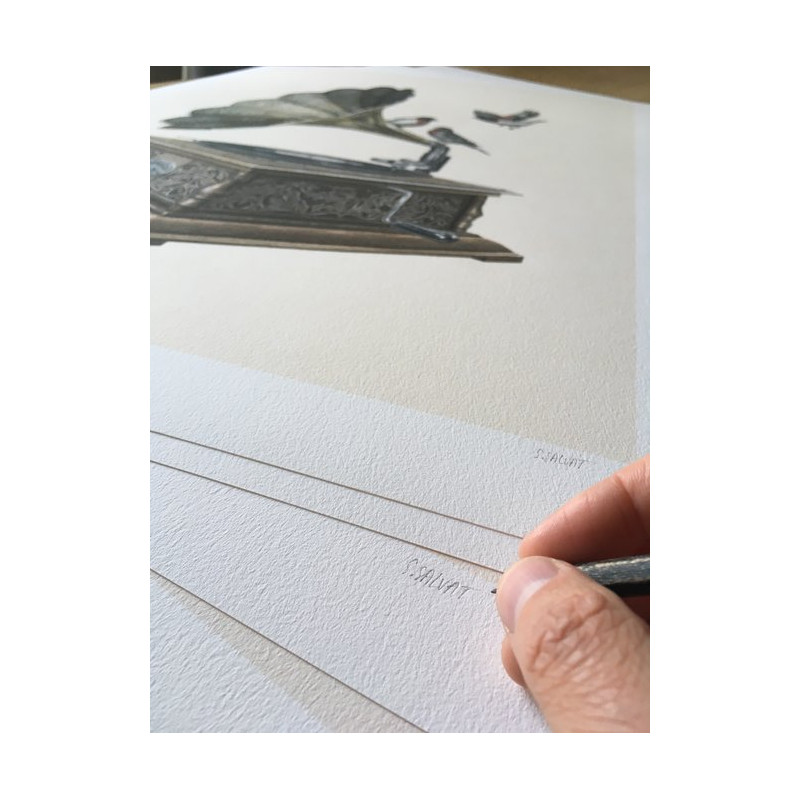 Inspired by the work of masters like Albrecht Dürer, Gustave Doré, Jean-Auguste-Dominique Ingres, Molitz and Moebius, he pays close attention to technique and details. His favorite tool, the Rotring pen, allows him to obtain a rendering close to engraving but always with a touch of modernity. A meticulous and delicate work that praises the passing of time, where each line acts as a count.