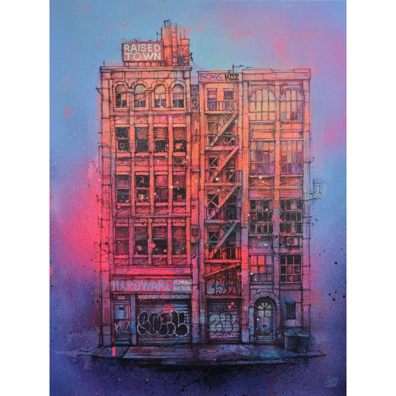 His works combine acrylic and aerosol to create expressive textures, enhanced by contrasts of monochrome and fluorescent tones. This unique visual language, both raw and delicate, invites the viewer into a world where power and vulnerability coexist in perfect balance.