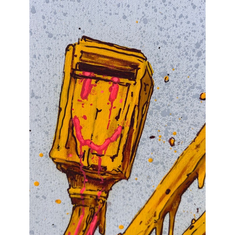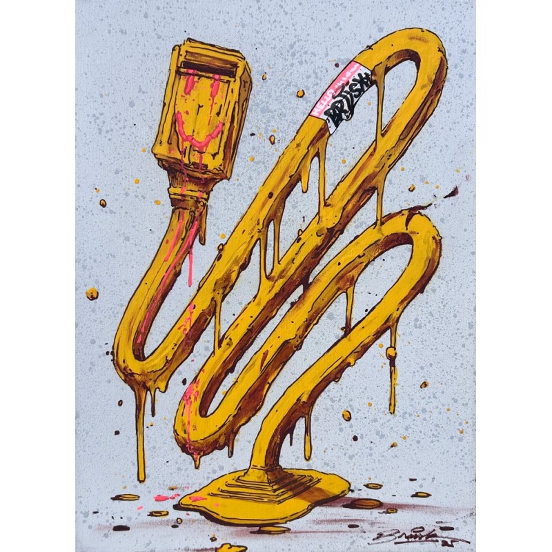 Brusk was born in Lyon in 1976. He is first and foremost a lover of drawing. It was in 1991 that this love led him to graffiti and its subversive world. Brusk is a multifaceted artist, working as a graffiti artist, muralist, painter, draftsman, sculptor, but above all, a storyteller of a world adrift, whose suffering and injustices he sublimates through an explosive and impactful aesthetic. Brusk's creativity has constantly evolved since 1991, but it is clear that the artist's style is marked by the use of two techniques that are almost omnipresent in his work: dripping and tearing, which very often fragment the representation of the world that the artist presents to us. From this alteration of the motif through tears and drips emerges a lightness and gentleness that reveal a world in which it seems possible to soften, to reconcile, to love, and even to hope for the advent of a better world. An ambiguity arises between a colorful and luminous form and a rebellious, acidic, sometimes even very dark background—a statement that denounces the dysfunctions of our modern societies, an inner revolt that transforms the ugliness of this world into an explosion of beauty, a true pictorial oxymoron that restores our hope. To reduce Brusk's work to tears and drips would therefore be a mistake, since the artist finely crafts a universe that is both light and brutal, aptly confronts nature and culture, and compels us to grasp the monstrosity of our world with a benevolent gaze free from all negativity. Brusk is an essential artist on the street art scene, who enjoys widespread recognition in the art market.