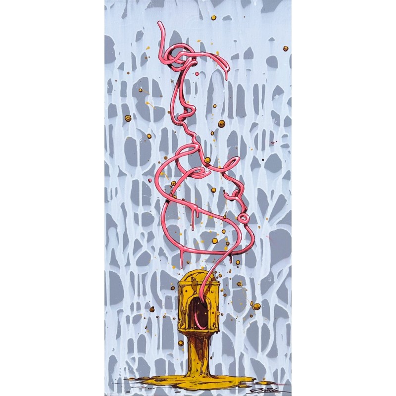 Brusk was born in Lyon in 1976. He is first and foremost a lover of drawing. It was in 1991 that this love led him to graffiti and its subversive world. Brusk is a multifaceted artist, working as a graffiti artist, muralist, painter, draftsman, sculptor, but above all, a storyteller of a world adrift, whose suffering and injustices he sublimates through an explosive and impactful aesthetic. Brusk's creativity has constantly evolved since 1991, but it is clear that the artist's style is marked by the use of two techniques that are almost omnipresent in his work: dripping and tearing, which very often fragment the representation of the world that the artist presents to us. From this alteration of the motif through tears and drips emerges a lightness and gentleness that reveal a world in which it seems possible to soften, to reconcile, to love, and even to hope for the advent of a better world. An ambiguity arises between a colorful and luminous form and a rebellious, acidic, sometimes even very dark background—a statement that denounces the dysfunctions of our modern societies, an inner revolt that transforms the ugliness of this world into an explosion of beauty, a true pictorial oxymoron that restores our hope. To reduce Brusk's work to tears and drips would therefore be a mistake, since the artist finely crafts a universe that is both light and brutal, aptly confronts nature and culture, and compels us to grasp the monstrosity of our world with a benevolent gaze free from all negativity. Brusk is an essential artist on the street art scene, who enjoys widespread recognition in the art market.
